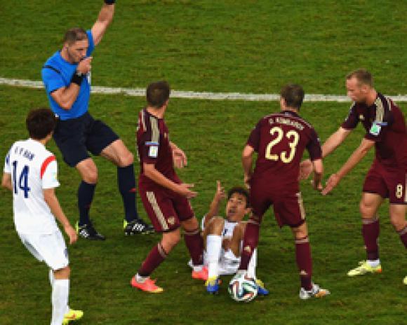 El seleccionado de fútbol de Rusia y su par de Corea del Sur empataron 1 a 1, en el estadio Arena Pantanal, de Cuiabá, en partido del grupo H que cerró la primera fecha del Mundial Brasil 2014.