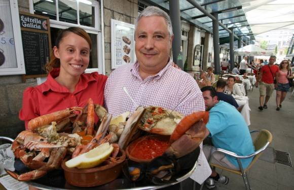 Todo aquel que se interesa por conocer la comida típica del lugar, en Vigo sí o sí tendrá que ir hacia la zona del puerto y elegir alguno de los muchos restaurantes apilados en estrechas callecitas para sentarse a comer frutos de mar. Uno puede sentarse y probar las ostras que orgullosos dicen sentirse los gallegos, que cuestan 6 euros la media docena (unos 33 pesos argentinos). Luego hay raciones (como un plato de entrada en argentina) con pulpos a la gallega, calamares y otros más, a 8 euros (44 pesos). Y por último, los mariscos, que llevan desde almejas y cangrejos, pasando por navajas y mejillones, hasta langostinos y berberones. Un pedido para dos personas cuesta 45 euros (247 pesos). Mejor es no hacer las cuentas, para que no provoquen indigestión los mariscos.