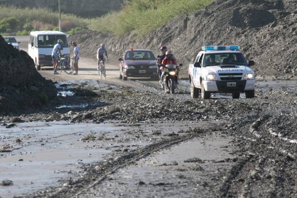 La lluvia que afectó Calingasta la noche del sábado trajo crecientes que cortaron la ruta 12 en varios tramos. Y aunque en vehículos y con precaución se podían cruzar, era arriesgado para los ciclistas largar la carrera en la Villa Calingasta y transitar por esos lugares, tanto por la integridad física como por los costosos materiales. Por eso, el club Del Bono, el organizador, decidió llevar la largada unos 15 kilómetros más adelante, donde ya no había cortes.