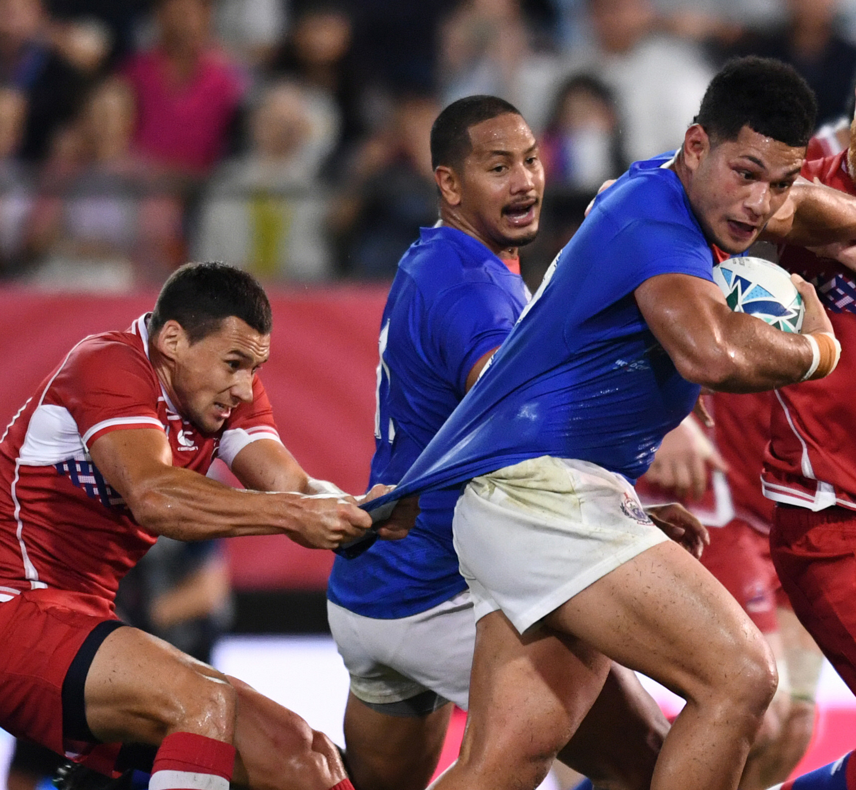 En el primer tiempo Rusia le planteó un parejo desarrollo a los samoanos, quienes incurrieron en algunas fuertes infracciones. En el segundo fue amonestado el ruso Kirill Gotovsev y los samoanos fueron claros dominadores a partir de una superioridad física y técnica.