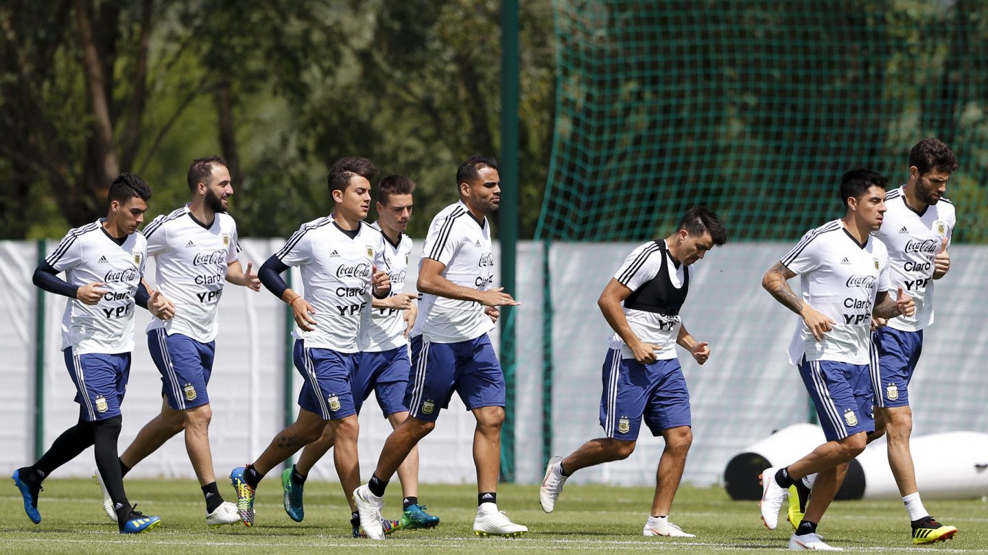 En el primer grupo estuvieron Gabriel Mercado, Federico Fazio, Cristian Ansaldi, Marcos Acuña, Enzo Pérez, Giovani Lo Celso, Paulo Dybala, Gonzalo Higuaín y Cristian Pavón. Es decir, los jugadores que en la práctica de ayer fueron suplentes. Ellos fueron los que pudieron verse en los 15 minutos en los que pudo acceder la prensa y realizaron algunos juegos con pelota y ejercicios de elongación.