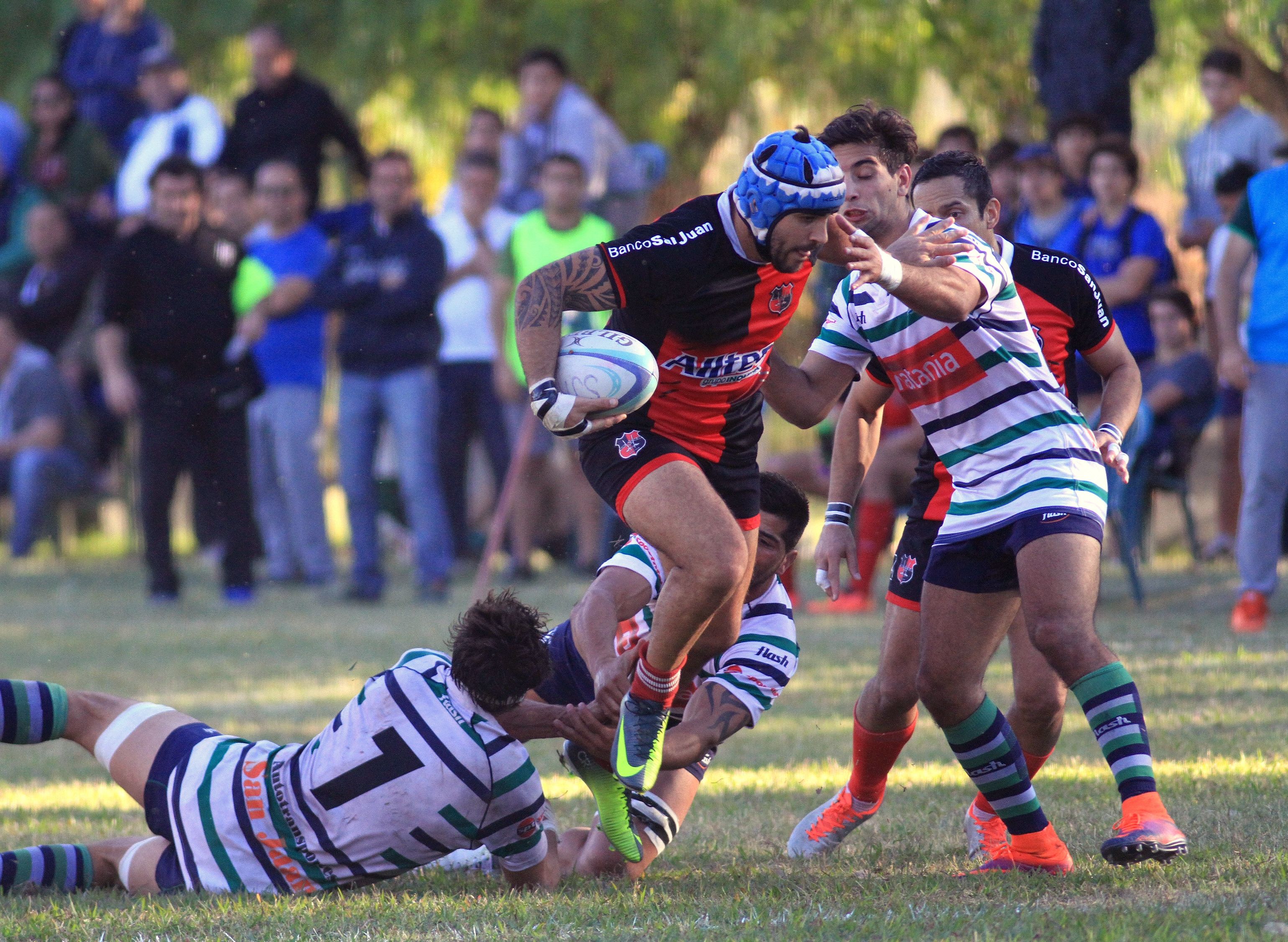 El partido tuvo pasajes intensos y no defraudó las expectativas que había cosechado en la previa, pues enfrentó a uno de los punteros (el otro es San Jorge RC, que juega hoy) y al Cacique, que aspiraba a conseguir una victoria que lo despegara de la parte baja de la tabla. Fue el local que sorprendió apenas comenzó el juego con un try del wing Federico Berbari a los 120 segundos. José Camacho, el apertura de Huazihul, descontó con uno de sus tres penales anotados en la primera parte. Sin embargo, un penal de Castro y un try penal del San Juan le dieron la victoria parcial al anfitrión, que pese a la presión que le aplicó el rival y que buena parte de ese segmento jugó en su campo, fue más efectivo para cerrarlo 15 a 9.