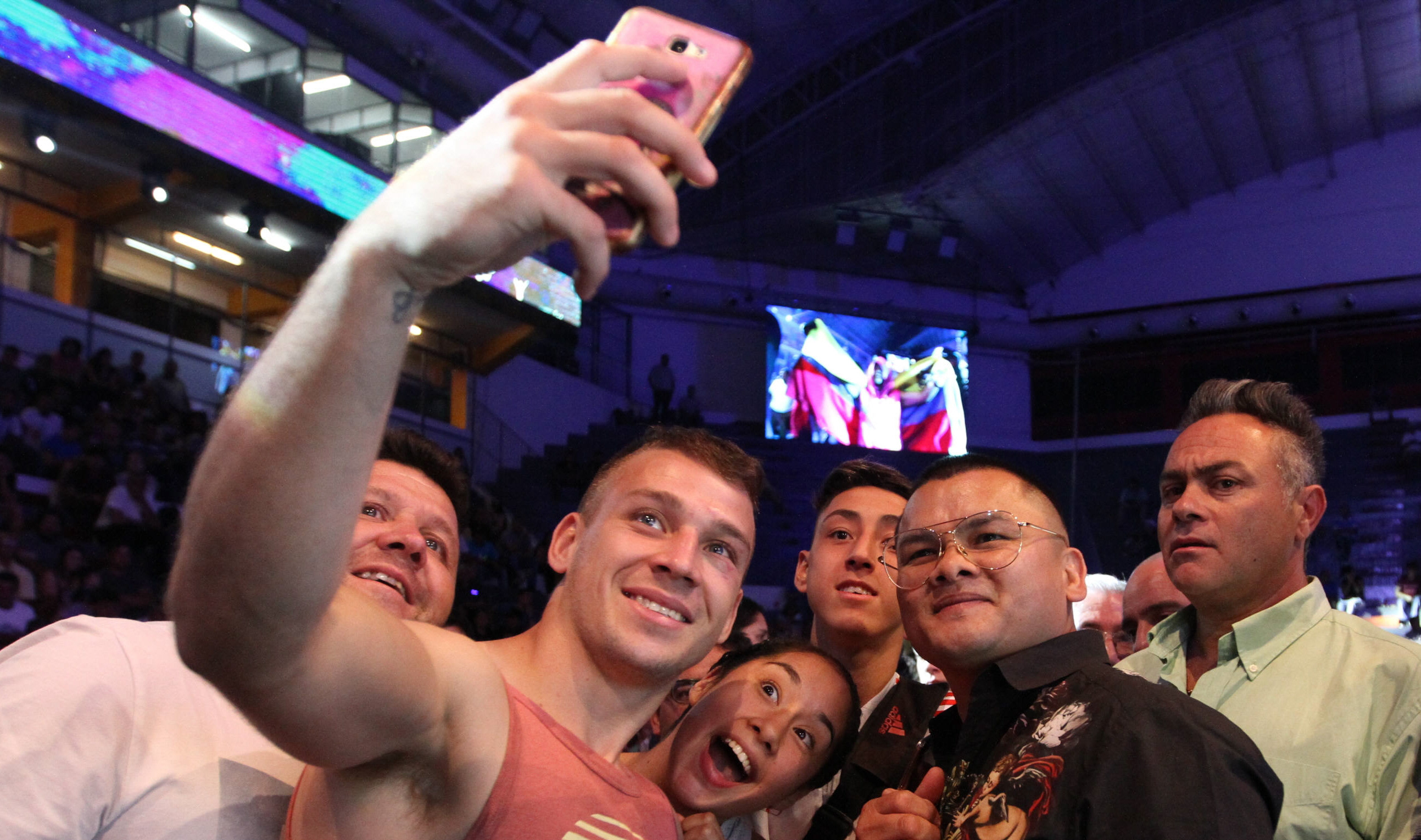 El "Chino" llegó pasadas las 22 al estadio. Acompañado por cuatro personas, estacionó sobre calle Urquiza y después de saludar al cuidacoche de la zona, no alcanzó a dar diez pasos cuando ya un grupo de aficionados del box lo frenaron para las selfies, a las que él -tal cual lo había hecho el miércoles por la noche en la Fiesta del Deportista del Año de DIARIO DE CUYO y también en el pesaje del día jueves-, acudió sin ningún tipo de problemas.