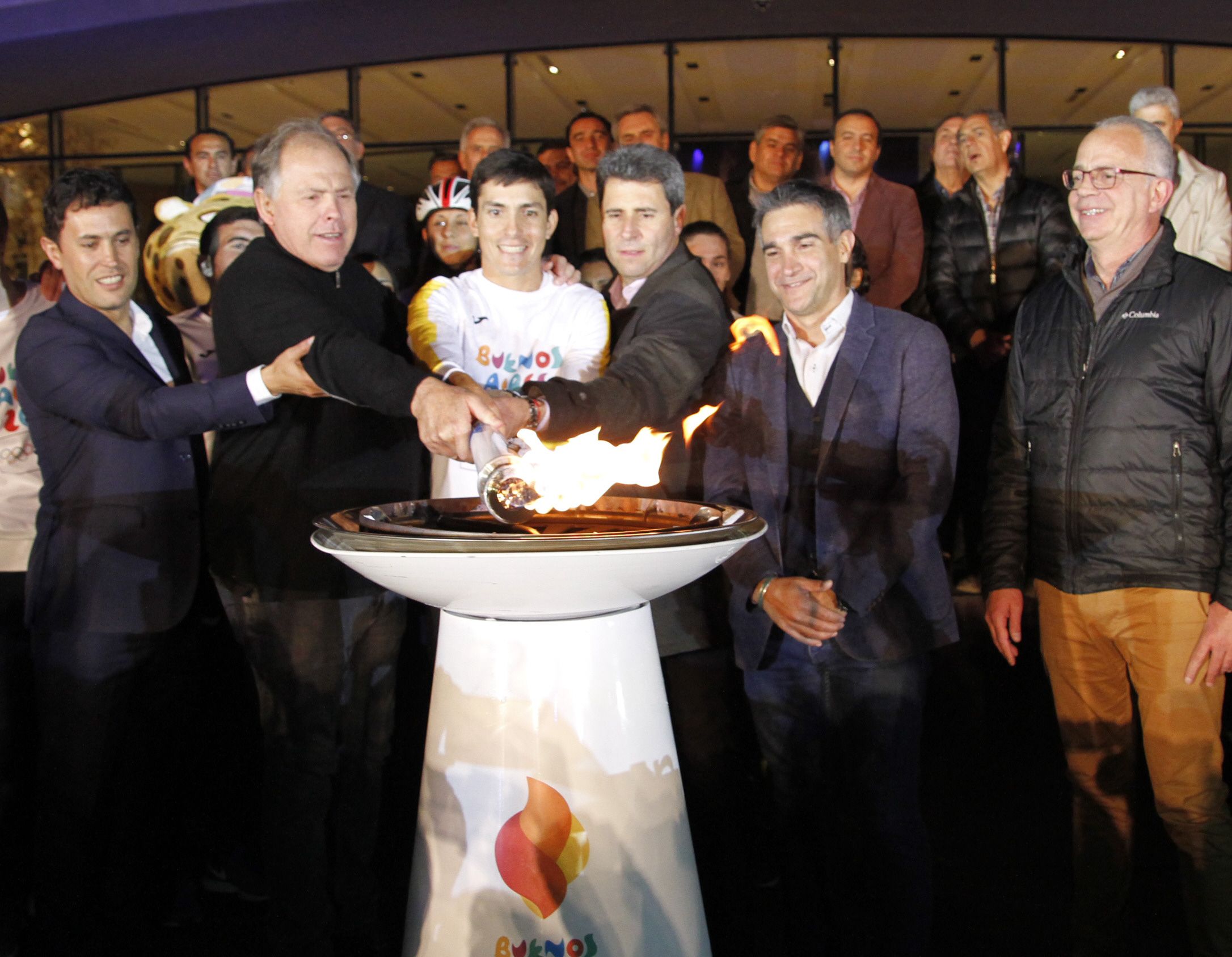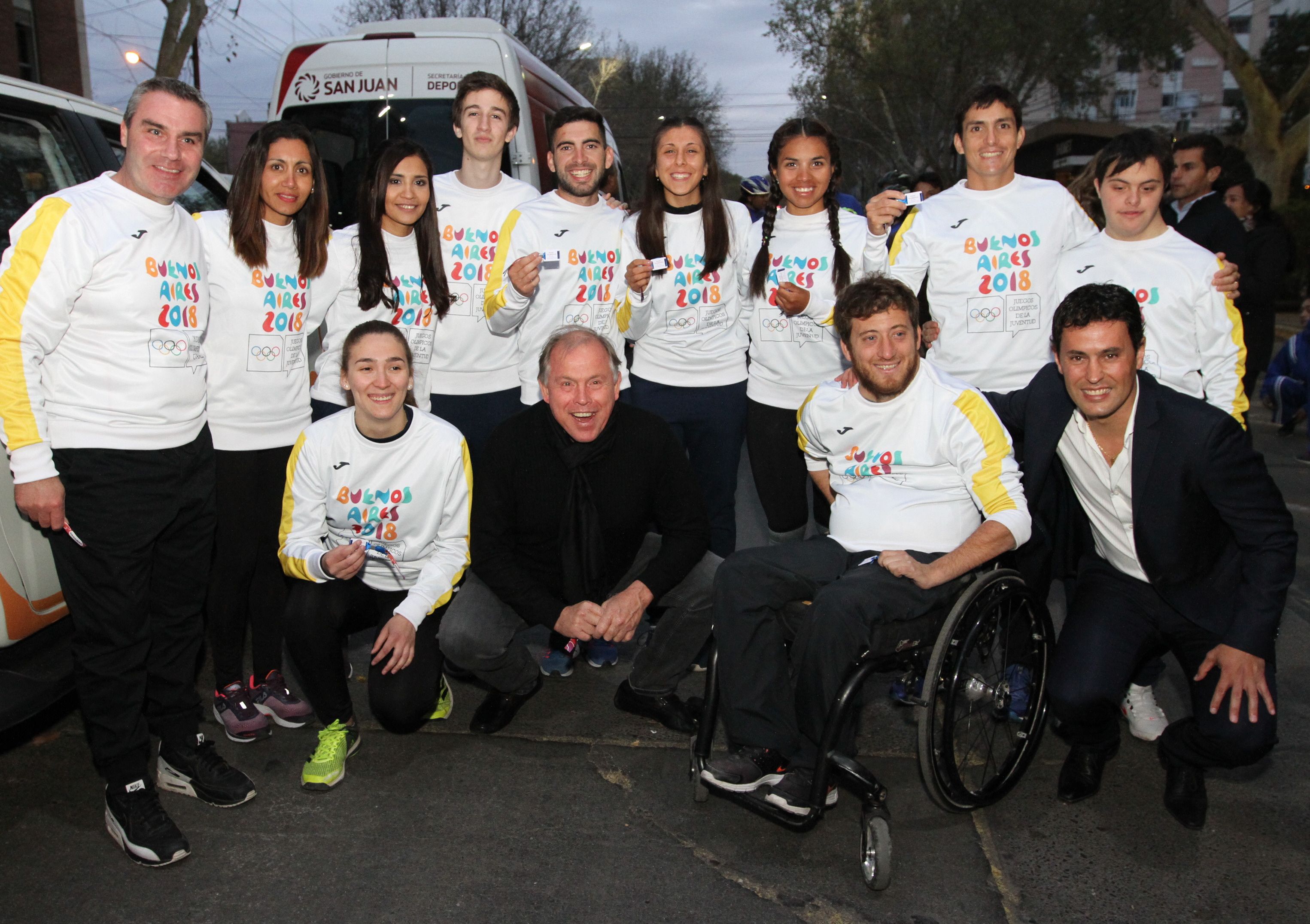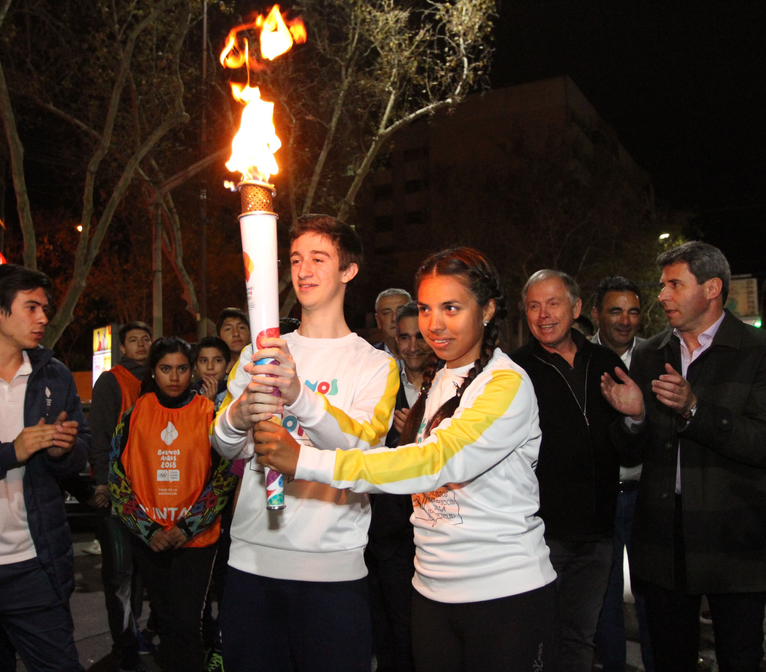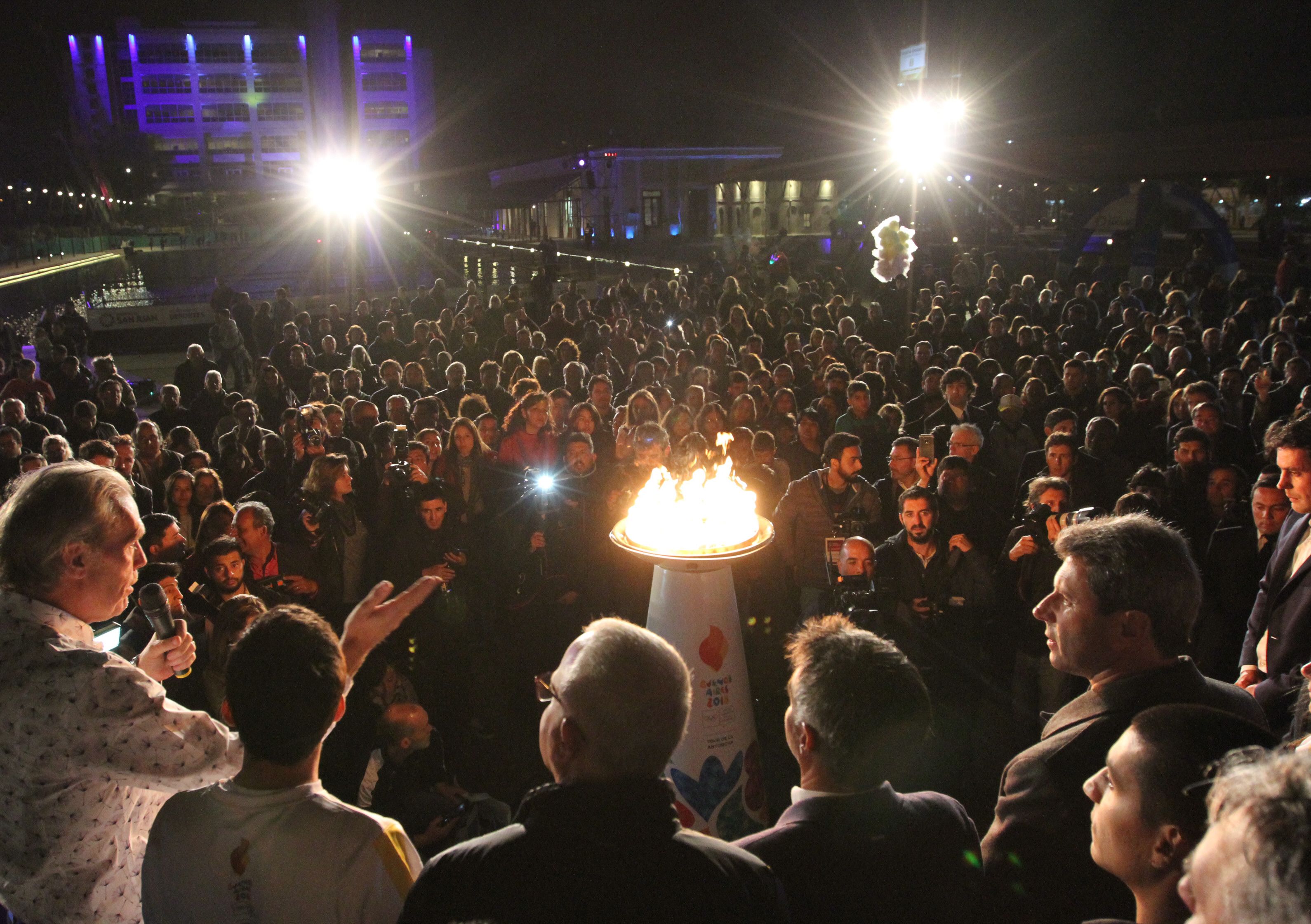 El gobernador Sergio Uñac, el secretario de Deportes Jorge Chica y Gerardo Werthein, presidente del COA (Comité Olímpico Argentino), se encargaron de encender la antorcha sobre Avenida Central a metros de Plaza 25. El exhockista Roberto Roldán, quien consiguió el oro en los Juegos de Barcelona, fue quien abrió paso.