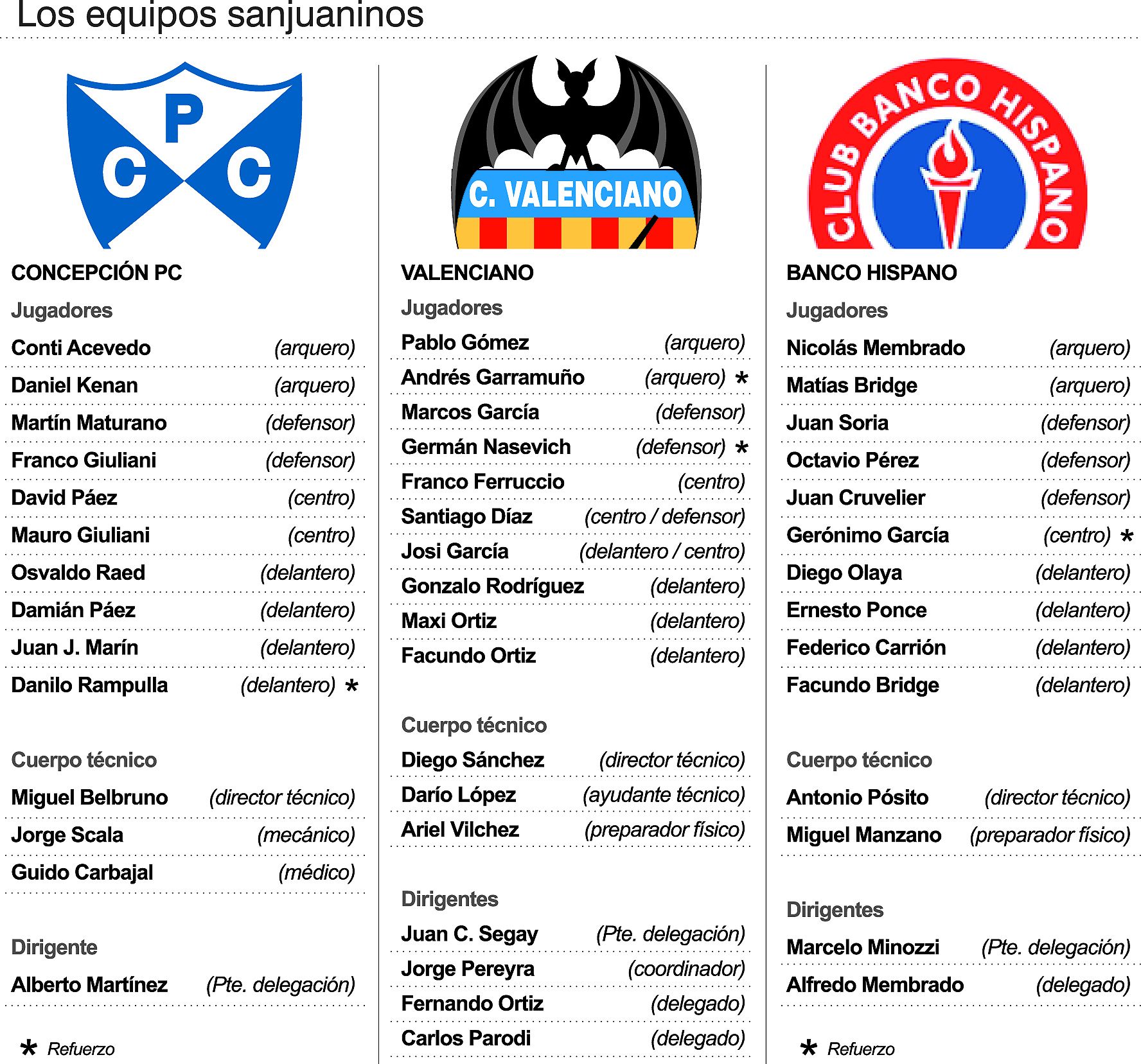 Los tres equipos sanjuaninos (en la infografía se muestran los integrantes de cada delegación) van con sueños concretos a pesar que no será nada sencillo. Estarán además tres equipos brasileños: Sport Recife (tendrá como refuerzos a los sanjuaninos Fabricio Marimont y Ezequiel Mena), Portuguesa de Recife (va con los sanjuaninos Ginestar y Juan José Moyano) y Portuguesa de San Pablo (jugará con el porteño Emanuel Cordamo como refuerzo). Y el representante colombiano Búfalo. Jugarán todos contra todos y los cuatro primeros irán a semifinales.