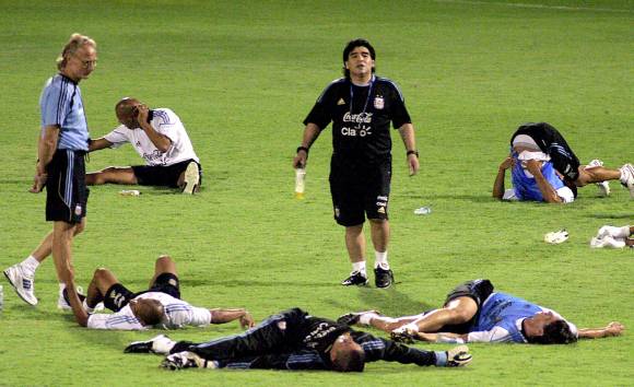 Aquella vez estuvo entre las filas del equipo argentino Diego Maradona, quien hoy lleva el buzo de DT. Para Maradona también tendrá un sabor particular este encuentro, porque será el primero en el que pueda volver a sentarse en el banco de suplentes luego de la sanción de 2 meses que le impuso la FIFA por sus malogradas declaraciones tras el partido por Eliminatorias frente a Uruguay, donde la albiceleste logró la clasificación al mundial. Pero más allá de ese detalle a nivel personal, el técnico verá en acción a jugadores que tuvieron pocas oportunidades en el seleccionado y a otros que directamente harán su debut. El hecho que el partido no se dispute en una de las denominadas "fechas FIFA’ hizo que no pudieran convocarse a los jugadores que militan en el extranjero y que suponen que son la base del plantel para el Mundial (Messi, Mascherano, Demichelis, etcétera). Por eso la convocatoria se limitó a los futbolistas del medio local que tienen la chance de mostrarle al técnico que pueden estar entre los 23 convocados. A la cabeza está el delantero Martín Palermo, el héroe del triunfo en tiempo adicionado ante Perú que sueña a los 36 años con jugar su primer mundial. Además, el funcionamiento de la selección no fue convincente el año pasado, por lo tampoco es utópica la idea que alguno de estos 20 convocados para el partido de hoy siga siendo tenido en cuenta. Los laterales y los volantes externos son los puestos que, más allá del arquero, que Maradona no siente que haya dado todavía en la tecla. Y el tercer punto es que luego de este encuentro, habrá otro en febrero ante Jamaica en Mar del Plata, que también se jugará con futbolistas del medio local y un mes más tarde, ya sí por "fecha FIFA’ ante Alemania. El tiempo dirá si alguno de estos 20 convocados aprovechó el tren que pasó por San Juan para llevarlos al Mundial.