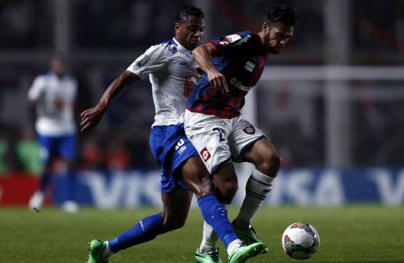 Con Ignacio Piatti intermitente, Ángel Correa perdido entre los defensores rivales y Mauro Matos separado del circuito de juego, la punta de lanza el Ciclón fue Héctor Villalba, quien se hizo un festín por la punta derecha ante Samudio, quien nunca pudo encontrarle la vuelta a la velocidad del atacante azulgrana. Fue justamente un desborde de Tito y un centro atrás que luego pifió Piatti- la maniobra más riesgosa de la etapa inicial.
