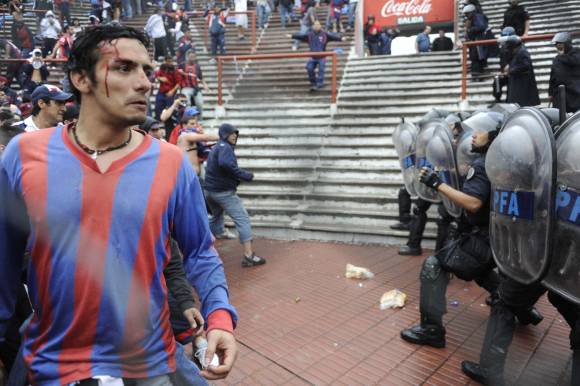 Buenos Aires, 21 de noviembre.-El partido comenzó con 25 minutos de atraso por incidentes entre hinchas de San Lorenzo, la policía lanzó gases lacrimógenos para terminar con el conflicto en la tribuna. Pero los gases afectaron a también a jugadores y ténicos.