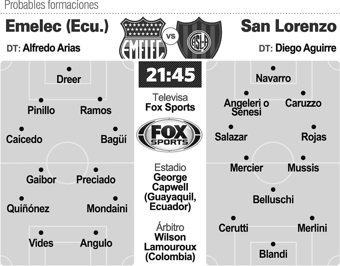 San Lorenzo abrirá hoy como visitante su serie de octavos de final de la Copa Libertadores frente a Emelec, en Guayaquil, Ecuador. El partido se jugará desde las 21.45 de Argentina en el estadio George Capwell y televisación de Fox Sports.