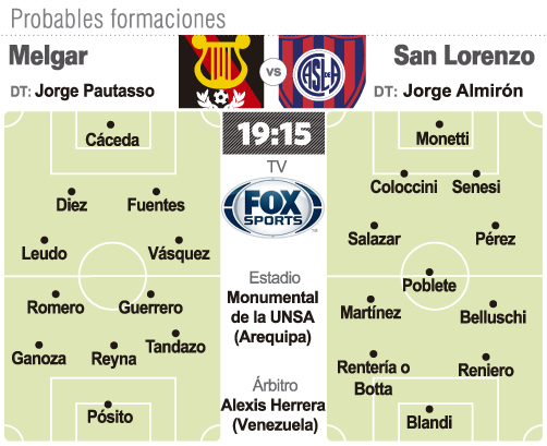 Por el lado de Melgar, el equipo se ubica en el 16to. lugar del torneo peruano con una sola unidad y quedó libre en la última jornada (3ra.) por su participación en la Libertadores, un rival que no asustaría pero que San Lorenzo hoy lo puede sufrir.