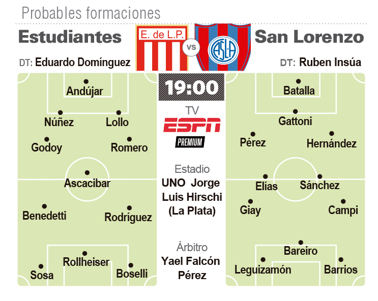 El técnico del "Ciclón", Ruben Darío Insúa, mandará a Campi por Braida, quien está suspendido. Tampoco podrá contar con el delantero Cerutti por lesión y en su reemplazo estará el paraguayo Iván Leguizamón.