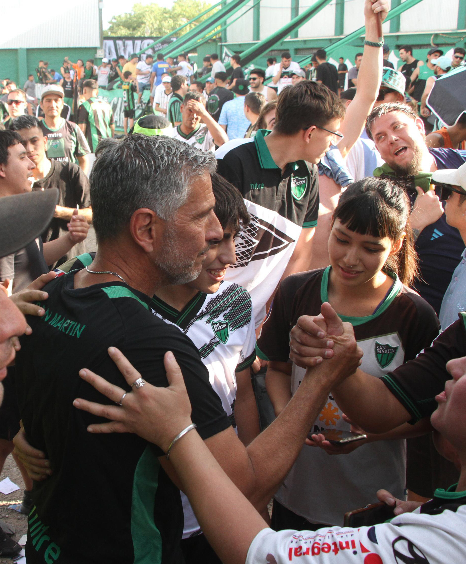 No será un domingo más. San Martín quiere que sea un domingo de gloria, una página para su rica historia. Con todo por ganar, con poco para perder, el Verdinegro irá por la clasificación a la segunda etapa del Reducido visitando al Deportivo Maipú de visitante, con todo lo que significa un cruce San Juan-Mendoza. Seguramente por eso, para potenciar todo lo que este plantel ya tiene ganado por la campaña que lo metió en el Reducido, medio millar de verdinegros desafiaron los 37 grados y al viento zonda para despedir y alentar, para exigir y agradecer, para sentirse parte de este desafío, despidiendo al equipo de César Monasterio desde el estadio Hilario Sánchez. Una previa de más de dos horas, con la acertada decisión de abrir los portones de la calle Mendoza, llevaron a que el Banderazo de la Esperanza se diera en el corazón mismo del sentimiento por San Martín. Tirantes, bombos, redoblantes, sombrillas.