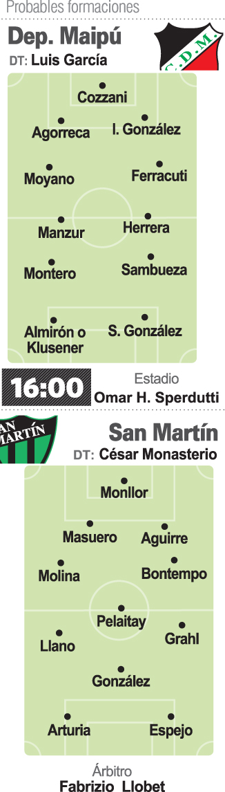 Si con ese respaldo no alcanza, lo que este grupo se puede ganar no tiene precio. Ir de punto, volver de banca. Ganar en Mendoza, volver a regodearse con esa paternidad cuyana seduce y potencia. Y desde lo futbolístico, el desafío es únicamente ese: ganar para seguir. Con esa necesidad, San Martín pondrá en cancha una versión más ofensiva. Con doble punta, con enganche y tres volantes más dos laterales que siempre pasan. Sin misterios, el equipo del Pueblo Viejo irá por esa épica que lo agranda en las difíciles. Monasterio apostó al ataque, al desequilibrio de Leandro Espejo para darle compañía en el ataque a la generosa entrega de Marcos Arturia. En el medio, la pelota seguirá siendo propiedad de Sebastián González, ahora con la asistencia del zurdo Francisco Grahl que siempre juega.
