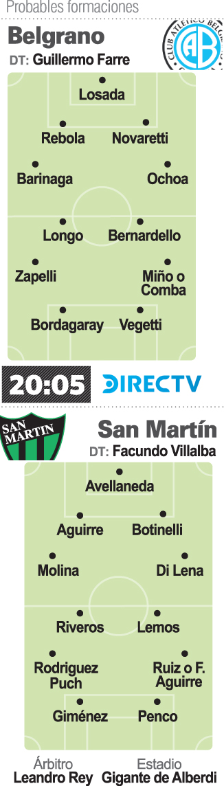 En cinco fechas de 34 previstas, se podría decir que todo aún ni habría comenzado pero en San Martín se aceleraron todos los tiempos y después de la caída de la fecha pasada, hoy en Córdoba (20,05 horas) y ante el poderoso Belgrano será una de las apuestas más fuertes de esta Primera Nacional que recién está calentando motores. La chance de volver al triunfo, la necesidad de encontrar una línea futbolística y la continuidad del ciclo Villalba parecen estar en juego en sólo 90 minutos. Será partido decisivo, clave. Será un antes y un después en el amanecer de una temporada que comenzó derecho, se desdibujó y ahora, condicionó todo.