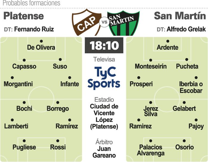 Pero claro Platense será rival con todos sus argumentos pero además, hoy San Martín ya empezó a jugar contra el mismo San Martín. Afuera, lejos de San Juan, empató en Córdoba, ganó en Santiago, igualó en Carlos Casares y en Morón, pero necesita hacerse fuerte desde lo anímico, metiendo un partido grande, que haga ruido y con el presente inmediato del Calamar, dar ese golpe y por TV -irá por TyC Sports- puede darle ese envión de confianza que hoy lo atormenta.