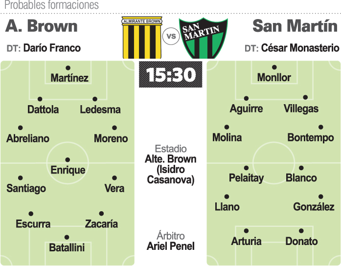 En esto no hay secretos. Uno (San Martín) está tercero. El otro (Almirante Brown) es el segundo. Hoy, partidazo entre ambos. Allá, en Isidro Casanovas, en la provincia de Buenos Aires. En los pagos de La Fragata, un equipo que se mostró protagonista de la edición 2023 de la Primera Nacional. Es más, estuvo puntero por varias fechas. Esta tarde (largan a las 15) el Verdinegro sanjuanino buscará dar la sorpresa en ese difícil reducto. Casi como desafiando a su flojo legajo de triunfos como visitante. Es tarea difícil. Complicada. Pero de ninguna manera imposible.