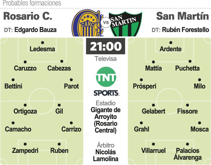 El "canalla" viene de ganarle a Estudiantes de La Plata (2-1) después de ocho partidos sin victorias, mientras que el "santo" sanjuanino venció de visitante a Gimnasia (2-0) y salió de la zona del descenso. El director técnico de Central, Edgardo Bauza, anticipó que pondrá lo mejor que tiene, es decir que volverán al equipo el defensor Matías Caruzzo, recuperado de un desgarro en un aductor; y el volante Néstor Ortigoza, quien cumplió la fecha de suspensión contra Estudiantes, en lugar de Marcelo Ortiz y de Pedro Emmanuel Ojeda.
