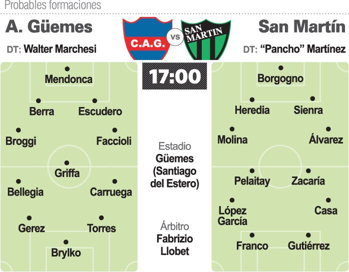 Debutó en casa y con victoria. El combo ideal para arrancar con el pie derecho cualquier tipo de torneos. San Martín está bien. Anímica y físicamente. Al menos así lo demostró el domingo pasado ante Alvarado, al que le ganó por la mínima. Hoy, en Santiago del Estero, tiene una prueba exigente para afirmar ese buen comienzo. En la provincia norteña enfrentará al local Güemes, que en la primera fecha abrochó un importante empate como visitante de Arsenal de Sarandí.