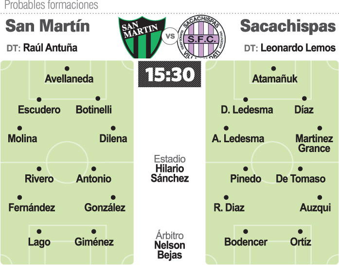 En un momento dulce de la campaña, todo sirve. Todo suma y entonado como nunca después de haber terminado con la racha adversa de no poder ganar de visitante, el Atlético San Martín volverá hoy a ser local con el único objetivo de seguir ganando para terminar de afirmarse en la parte alta de las posiciones de la Primera Nacional. Su rival será Sacachispas, ascendido a la categoría, que por ahora no puede terminar de acomodarse y está en la parte baja de la tabla, con apenas tres triunfos en su campaña.