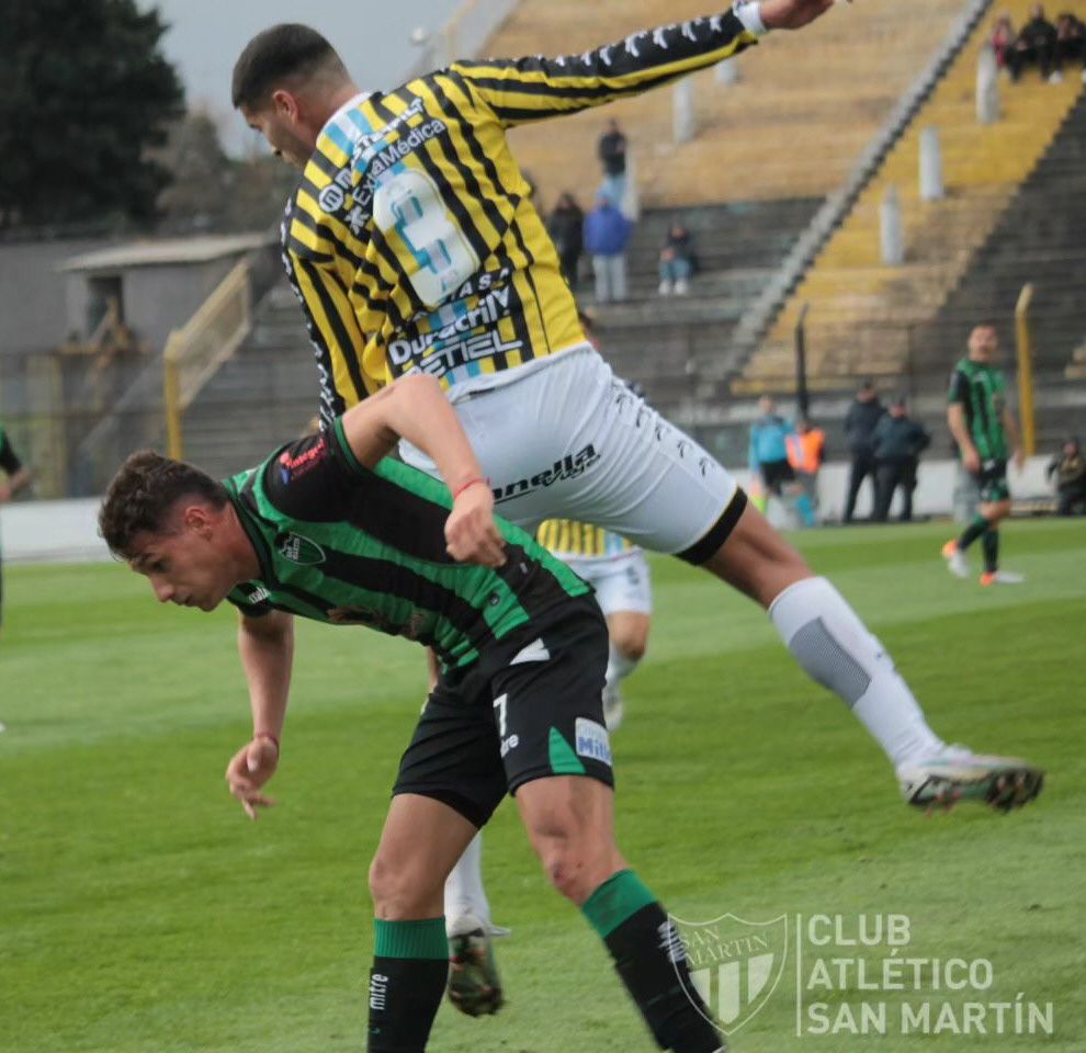 Una película repetida. Otro final amargo y esta vez más doloroso que nunca porque en el juego, en el trámite, Atlético San Martín no había sido superado por el hoy líder de la Zona A. Es que Almirante Brown encontró la llave de la fortuna en los últimos 15′ de partido para terminar dejando al Verdinegro con las manos vacías, injustamente. Desde lo táctico, San Martín supo controlar todo el vértigo que Almirante había mostrado, desde lo físico lo superó en varios tramos. Faltaba el gol y lo hizo en el amanecer del segundo tiempo con un cabezazo de Bontempo pero en los últimos 15′ todo se derrumbó. La fortuna en el tiro libre del Gurí García sirvió para descolocar a Monllor y empatar la historia. Luego, en el minuto final, una grosera posición de offside de Datola le abrió el camino a la victoria para la Fragata con el gol de Vera. Pero tan esquiva fue la fortuna con el equipo sanjuanino, que ni siquiera ligó en el tiro del final cuando Augusto Aguirre cabeceó para empatarlo y la pelota se fue besando el palo izquierdo del arquero local. Otra vez, sin nada. Otra vez, manos vacías y mucho más dolor por el desarrollo del partido.