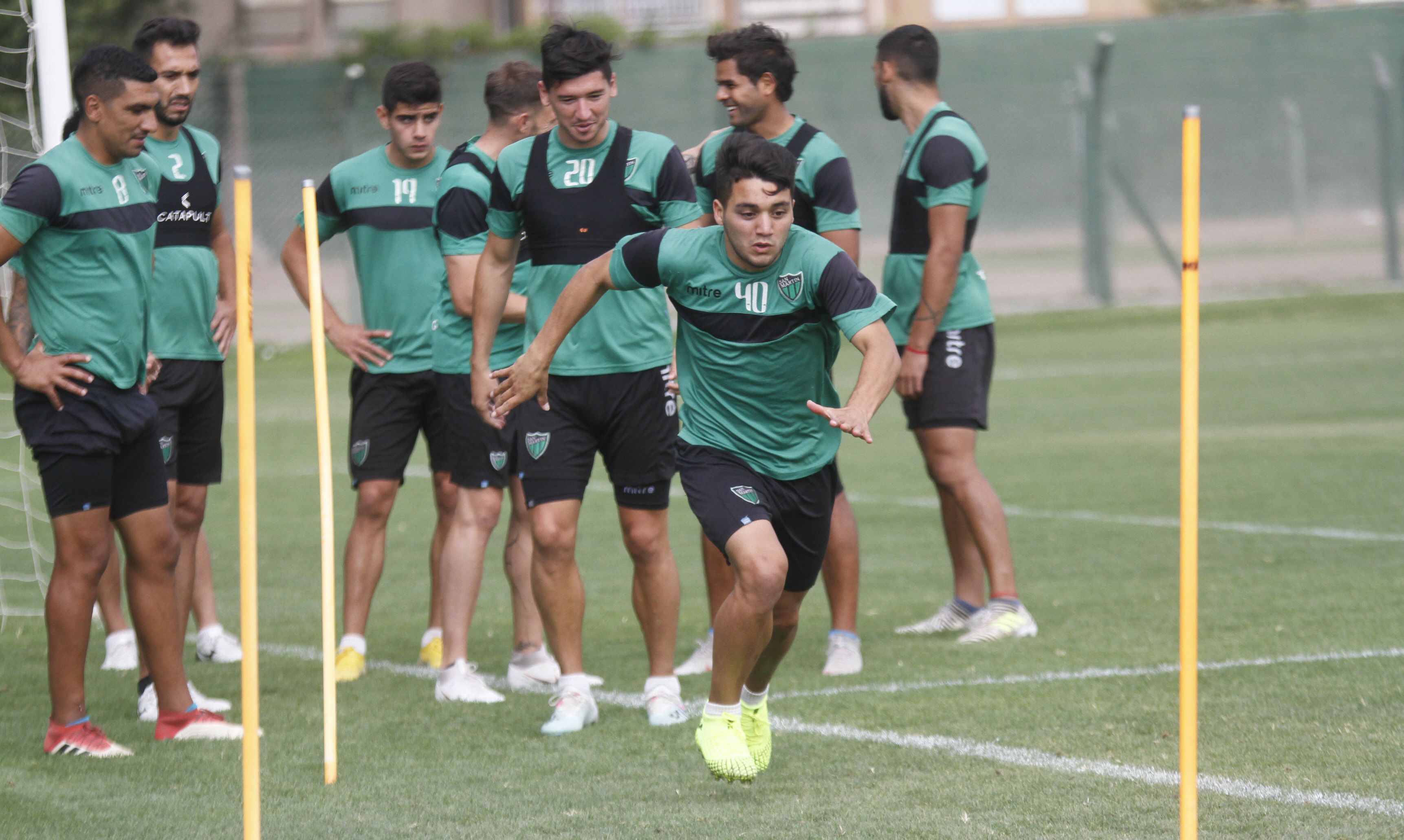 Físico. El trabajo del plantel de San Martín fue matutino y se concentró en tareas de acondicionamiento físico. Ezequiel Vidal encabeza una de las pasadas. Hoy ya comenzará la parte futbolística.