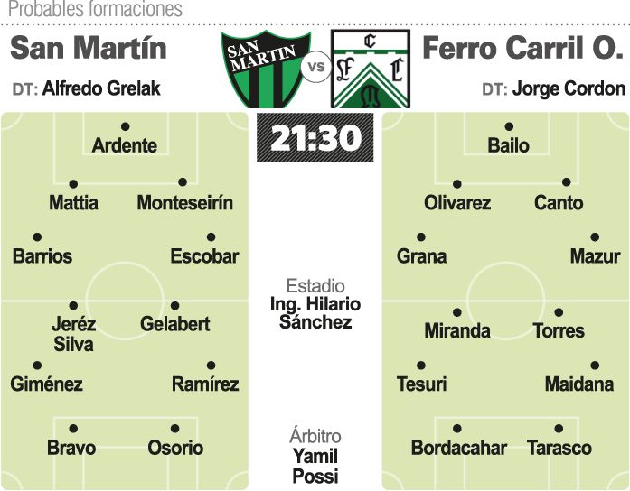 Pasó Atlanta, las polémicas, la derrota y en San Martín, el receso eleccionario sirvió para barajar y dar de nuevo. Por eso, esta noche cuando reciba a Ferro Carril Oeste por la fecha 11 de la Primera Nacional, el objetivo verdinegro será volver al camino del triunfo de la mano de la consolidación de un equipo que ya dio señales de identidad ante Platense, Independiente Rivadavia e incluso Atlanta. Es que Grelak encontró el sistema y los nombres para sostenerlo, con la intención de ir a acomodarse en la zona de clasificación, expectante de las primeras posiciones. San Martín tiene 13 puntos y viene de perder ante Atlanta. El equipo que dirige Alfredo Grelak necesita ganar para al menos acercarse a la zona de clasificación para el reducido, entre el segundo y el quinto puesto.