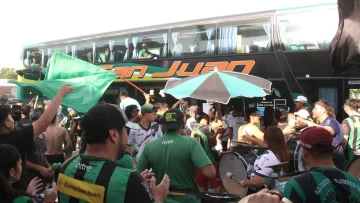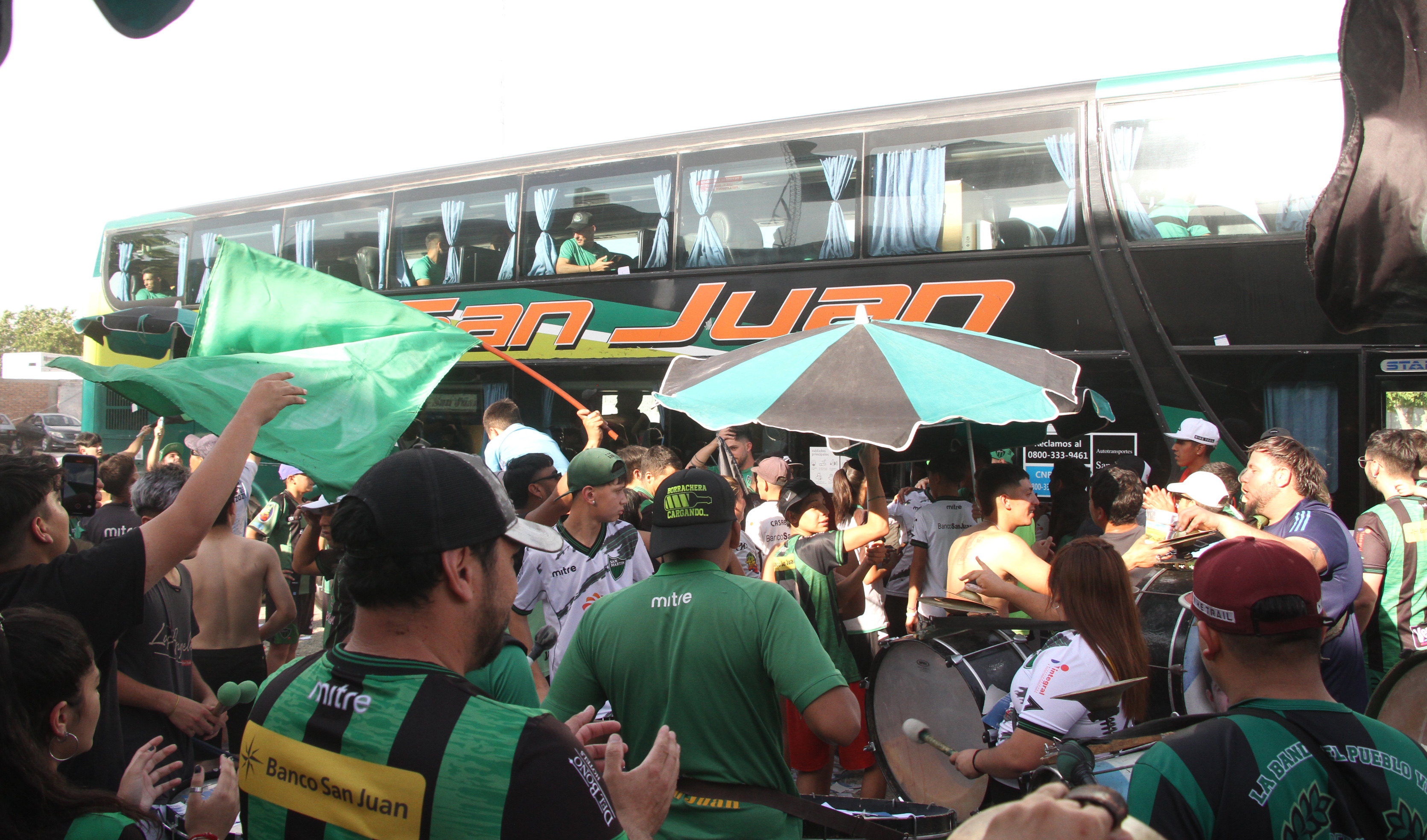 El plantel de San Martín partió este sábado rumbo a Mendoza donde este domingo a las 16 se medirá ante el Deportivo Maipú. Los hinchas del Verdinegro se hicieron presentes para despedir al plantel con banderazo de apoyo, teniendo en cuenta que el encuentro en la vecina provincia se disputará con hinchas locales.