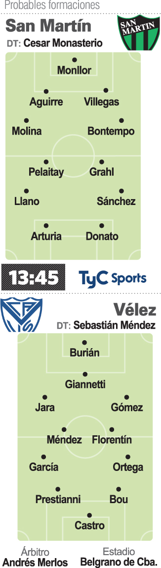 Con una formación con varios cambios respecto de lo que jugó en Isidro Casanova, hoy en cancha de Belgrano (13.45 horas), el Verdinegro se exigirá al máximo contra un Vélez que no es su mejor versión, pero que es equipo de Primera con todo lo que implica. En ese ‘mix’ que César Monasterio decidió parar en cancha por los 16avos de final, se destaca el regreso de Francisco Grahl que estuvo suspendido en la Primera Nacional y hoy será parte del mediocampo junto a Nicolás Pelaitay. Recordando que ni Jonatan Blanco ni Sebastián González serán de la partida. Así, con línea de cuatro en el fondo, San Martín tendría en cancha una propuesta simple y ordenada, con el permanente respeto por la pelota que ha demostrado en toda la temporada. La caída contra Almirante Brown necesita una revancha pronto y en San Martín todos saben que avanzar en la Copa puede servirles y por eso irán por la victoria.