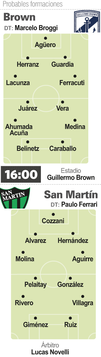 El torneo es largo. Eso lo conoce bien San Martín que esta tarde visitará a Guillermo Brown de Puerto Madryn por la segunda fecha de la Zona B de la Primera Nacional. El encuentro, que comenzará a las 16 horas y será arbitrado por Lucas Novelli, será una buena chance para el Verdinegro de ir afianzando su juego después del paso exitoso en el debut venciendo a Atlético Rafaela.