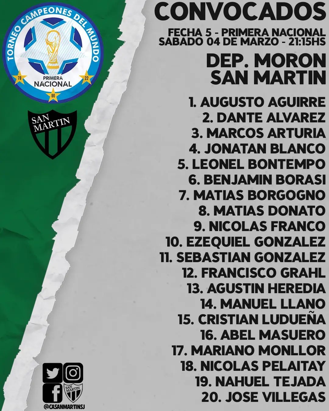 San Martín partió rumbo a Buenos Aires, donde el próximo sábado se verá las caras con Morón, con una importante novedad: entre los convocados aparece Leonel Álvarez, uno de los puntos salientes de la temporada pasada que en este torneo no tuvo minutos a causa de un desgarro.