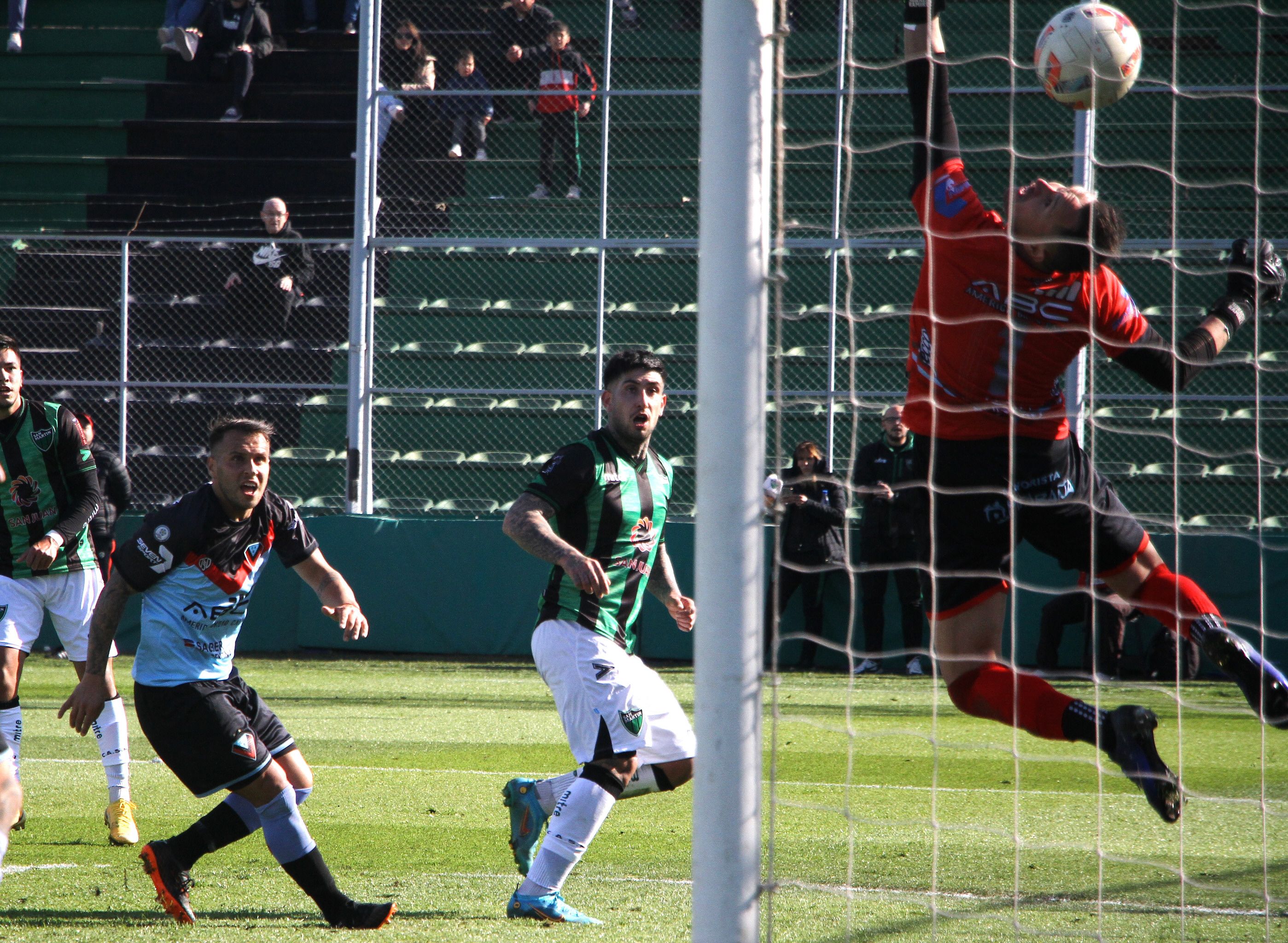 Esta vez no fue comienzo a toda presión de San Martín. Le costó acomodarse porque el repliegue de Brown lo fue incomodando y los que saben, los que piensan y hacen la diferencia con un toque sutil como González o Rivero no tenían lugar como para hacerlo. Pero claro, a falta de juego, el Verdinegro se vistió de contundencia y a los 17′ empezó a ganarlo con el gol de Lago tras un córner cerrado y el anticipo de Franco que obligó a la duda de los centrales. Parecía que se resolvía pronto todo el local pero tampoco se pudo terminar de soltar. De a ráfagas apareció y Sebastián González tuvo una clara pero remató débil. Dentro de un trámite discreto con mucha marca y juego cortado, San Martín volvió a mostrarse contundente y a los 42′ duplicó su ventaja con el gol de Nico Franco tras un centro de Fernández, asistido deliciosamente por Rivero. Era el 2-0 y parecía todo definido más aún cuando en el cierre de esta primera etapa, Franco anticipó al arquero Ramírez, metió el globo pero le cerraron el remate debajo del arco.