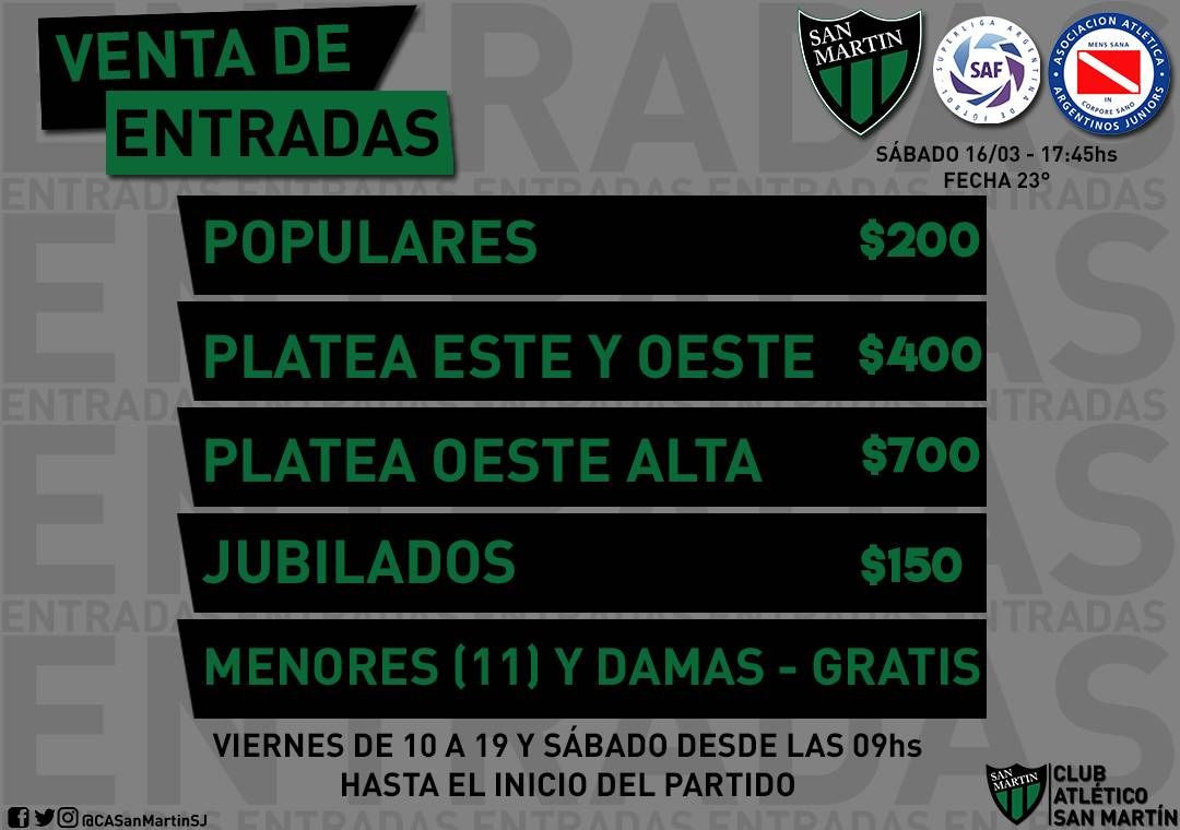 San Martín vs Argentinos, un duelo clave: mirá el precio de las entradas