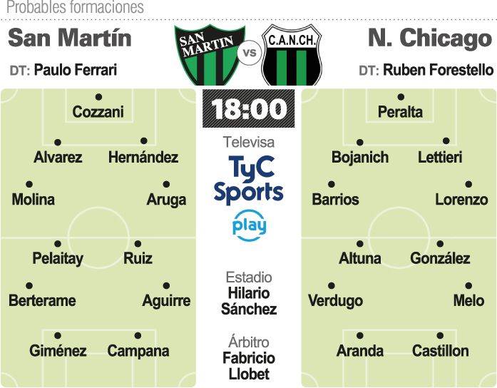 En lo futbolístico, San Martín irá con una renovación casi total en sus nombres. Ya no están Gelabert, Ardente, Osorio y varios más que hicieron su historia con la camiseta verdinegra. Llegaron varios refuerzos y todos con el mismo perfil: la juventud. Así, Ferrari pondrá en cancha un equipo que llega con tres amistosos: dos en Mendoza y uno en San Juan. Además, un modelo clásico con dos líneas de cuatro y dos puntas desde lo táctico, pero lo particular estará en los nombres que lo sustentarán: Juan Cozzani que viene de Lanús y de un paso por el seleccionado Sub-21 será el nuevo arquero; en el fondo, tendrá chance Francisco Alvarez de entrada y el resto todos debutantes con Molina y Aruga por los laterales más Hernández de segundo zaguero. En el medio, Pelaitay y Ruiz sobreviven del proceso anterior, mientras que los externos son debutantes en Concepción: Berterame y Jonas Aguirre. Arriba, el crédito total es para Matías Giménez, mientras que Lucas Campana que ya era parte del proceso anterior, será su compañero.
