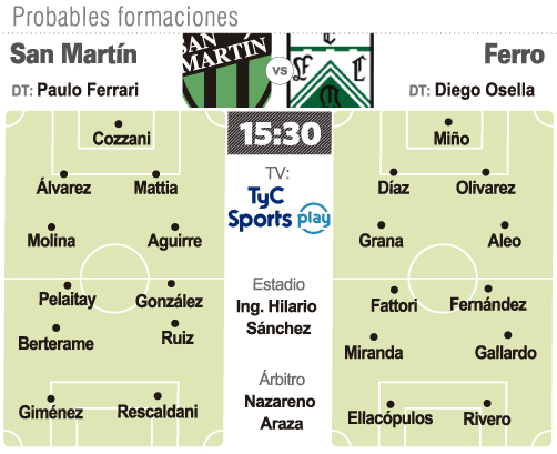 Hoy es ganar o ganar. La opaca labor del primer tiempo del jueves pasado en Morón sirvió para que el técnico Paulo Ferrari volviera a confiar en el mismo sistema que antes le había dado resultados con dos puntas más dos líneas de cuatro, con volantes de mucha llegada. Esa prueba de un mediapunta y un solo delantero terminó haciendo de San Martín un equipo inofensivo y en Morón cuando volvió a los dos puntas, estuvo cerca de empatarlo aunque sin soltarse del todo en lo futbolístico. Pero hoy, la formación Verdinegra tendrá de nuevo ese modelo ya conocido con Matías Giménez de arranque como punta junto a Ezequiel Rescaldani en el ataque, más el mediocampo que formarán Berterame por la derecha, Ruiz por la izquierda y los volantes internos Nico Pelaitay y Maxi González.