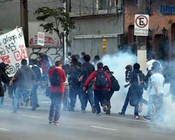Los manifestantes habían bloqueado desde las 6 de la mañana la circulación de una avenida central de la capital financiera de Brasil prendiendo fuego tachos de basura. La policía reprimió para dispersarlos y liberar el paso a los automovilistas.