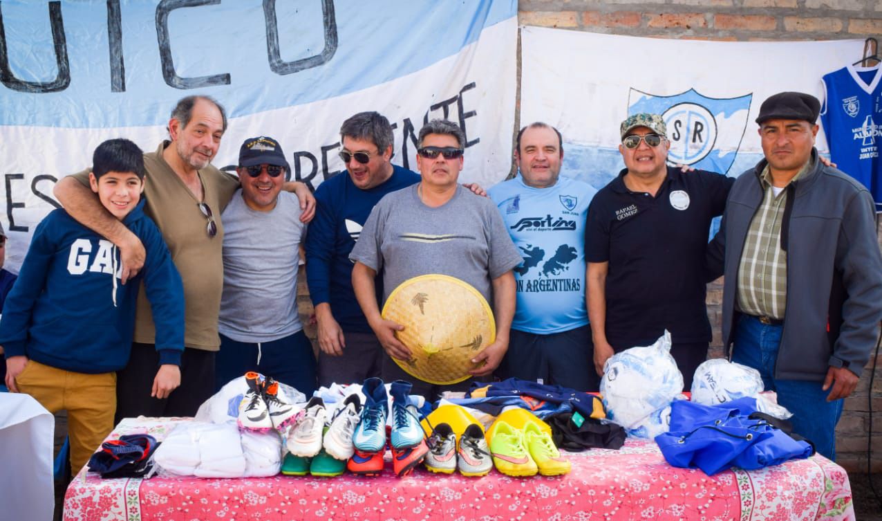El club San Roque de la Liga Albardón-Angaco sigue su camino de crecimiento y este fin de semana recibió la visita de un grupo de ex combatientes de Malvinas que fueron recibidos por su presidente Rubén Pérez. La visita de los héroes sirvió para acercar elementos de entrenamiento y competencia, como camisetas, conos, zapatos pero además la ocasión fue propicia para conocer de cerca a los hacedores de una página gloriosa de la Patria. Estuvieron Daniel Corvera, Nelson Valdez, Hugo Klando, Rafael Gomez, Oscar Aguilar y Gustavo Oballes quienes recibieron todo el afecto de un club humilde que sigue avanzando y demostrando que desde el sacrificio, se puede.