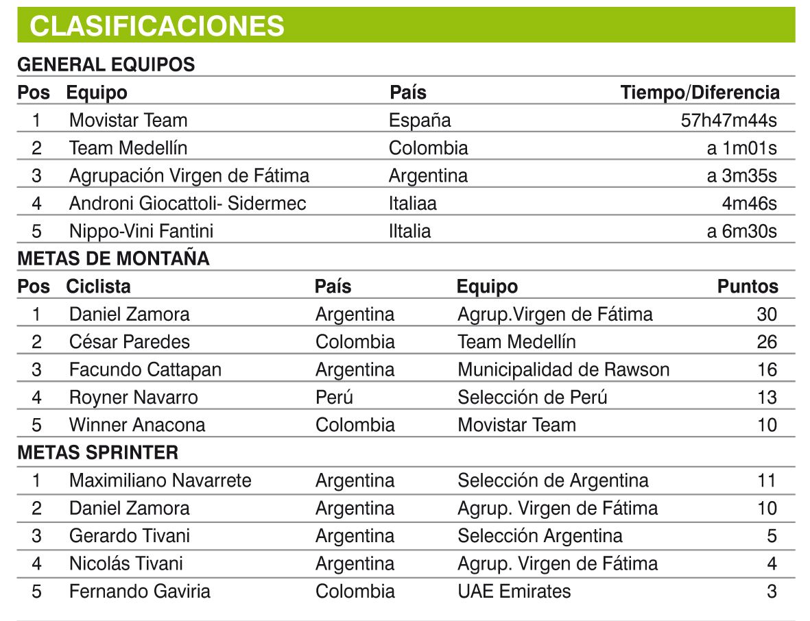 Al imponerse en las dos metas sprint de ayer, Daniel Zamora quedó a 1 punto del líder Maximiliano Navarrete (11 a 10). Hoy habrá dos embalajes intermedios. "Zamorita" ya se aseguró la casaca de la montaña, siendo el mejor sanjuanino y argentino.