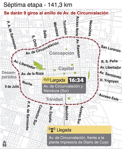 La 37ma Vuelta a San Juan concluirá esta tarde y lo hará en el que los sanjuaninos, orgullosos, decimos es el circuito para ciclismo más lindo del país: la Avenida de Circunvalación. Allí en el mágico anillo de los 16,3 kilómetros, ese que hasta 2004 era un páramo, se entronizará a un nuevo rey de la competencia.
