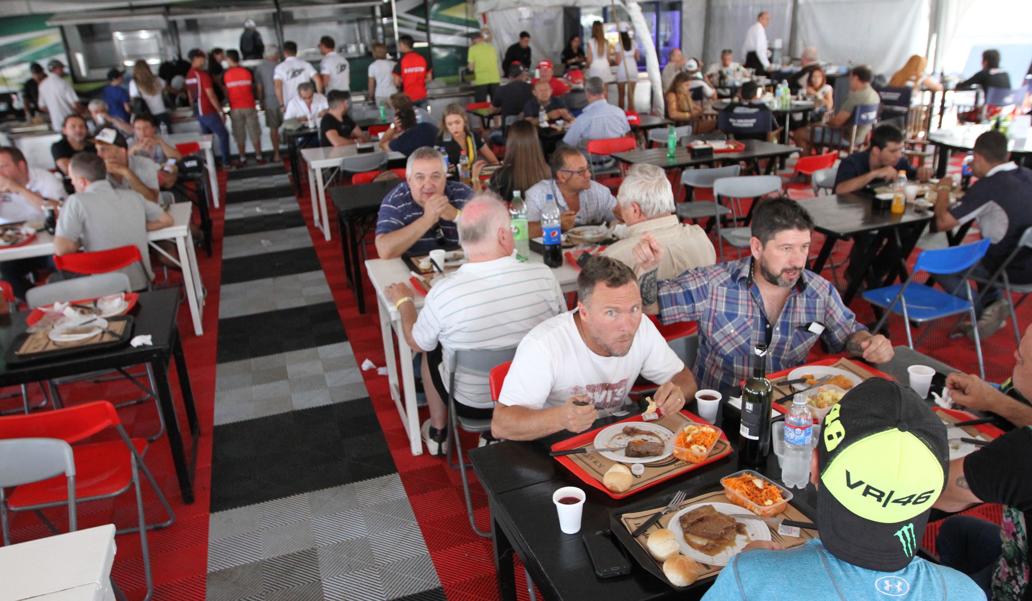 A pleno. Así lució el restó-bar que está ubicado en la zona de boxes. En el lapso que dura el parate entre ambas categorías, pilotos, mecánicos y promotoras aprovechan para almorzar.
