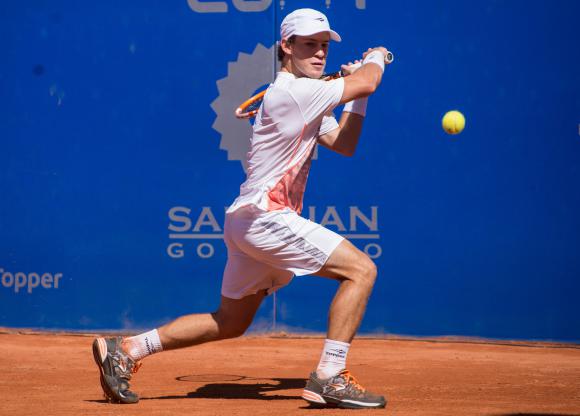 No pudo celebrar en la final del dobles el sábado, pero ayer se quitó esa espina clavada. Diego Schwartzman, el Pequeño en el ambiente del tenis merced a su 1,69 metros de estatura y 64 kilos, celebró ayer la coronación en el Challenger de tenis que se disputó durante toda la semana en el Club Banco Hispano. En la gran final, disputada bajo un intenso calor y que puso en disputa la Copa San Juan Gobierno, el bonaerense superó 7-6 (5) y 6-3, en 1h35m de juego, al brasilero, Joao Souza, en un choque entre el primero y segundo preclasificado del torneo que contó con el auspicio de DIARIO DE CUYO.