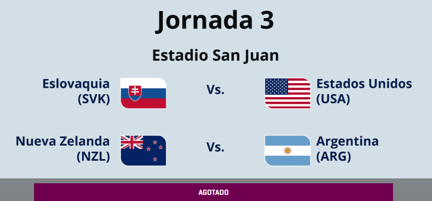 Cabe destacar que, con el mismo ticket se podrá ver también el encuentro previo, entre Eslovaquia y Estados Unidos.