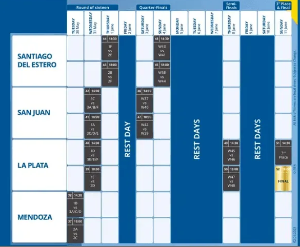 Los hinchas pueden adquirir tickets de $3.000 o $4.000 dependiendo la ubicación, para la fase de grupos y octavos de final. A partir de cuartos de final, los precios son de $4.000 y $5.000. Semis, el 8 de junio en La Plata, la entrada menos costosa será de $4.500 y ya hay disponibles algunas de $6.000. La final y duelo por el tercer puesto se celebrará el domingo 11 de junio también en La Plata. Los precios: de $6.000 a $8.000.