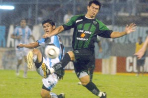 Con el pitazo de Castro, además del partido, comenzó la lluvia, un ingrediente clave para que el partido fuera a un gran ritmo. En ese sentido fue el local el que mejor se acomodó y entendió la clave del juego: buscar el juego aéreo. Así mostró falencias inéditas en la zaga central del Verdinegro. A los 11′ fue el primer índice que algo no andaba en la azotea sanjuanina. Un córner discutido por todo San Martín (bien cobrado por el árbitro porque el remate de Arraya se desvió en Sánchez) derivó en el frentazo cruzado de Arraya para el 1-0. Golpe difícil de asimilar. Pero desde entonces, el equipo de Hrabina mostró su mejor cara. Se paró quince metros más adelante y aunque no generó riesgo impuso su ritmo. El empate y el final de la sequía que llegó a 289′ sin goles lo estableció Guillermo Pereyra tras un derechazo que se le escapó de las manos a Di Giorgi. El local se aturdió con la igualdad. Pero no duró mucho en ese trance porque a los 23′ y nuevamente por la vía aérea llegó el segundo de los de Arzubialde: Otro córner al área sanjuanina y Pomba metió el derechazo cruzado, desde el mismo lugar que Arraya abrió el marcador, dio rebote Pocrnjic como pudo y nadie cerró en el rebote a Fernández Francou que puso el segundo. Más allá de la desventaja, igual San Martín fue y fue. Torresi demostró lo importante que es para el equipo y manejó el balón. Al mendocino le faltó una compañía y por eso no hubo más peligro para Di Giorgi, salvo por un tiro libre de Sánchez que despejó al córner el uno jujeño.