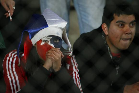 Uno de los primeros momentos de ovación fue cuando observaron por las pantallas gigantes del estadio que Brasil se quedaba afuera de la copa. Fue tan festejado como si Chile hubiera triunfado, quizás el único momento en que los tres países -Chile, Argentina y Venezuela- se unieron al ver que un "grande" se iba de la copa.