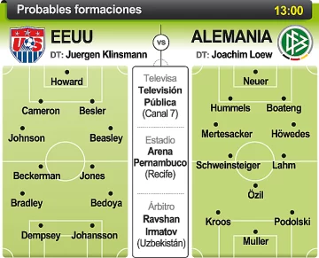 ‘Ambos equipos llegan al partido queriendo ganar el grupo. Así que vamos a jugar para tratar de ganarle a Alemania, para ubicarnos en el lugar preferencial para los octavos. Ese es nuestro objetivo‘, dijo el entrenador de Estados Unidos, el alemán Jürgen Klinsmann.