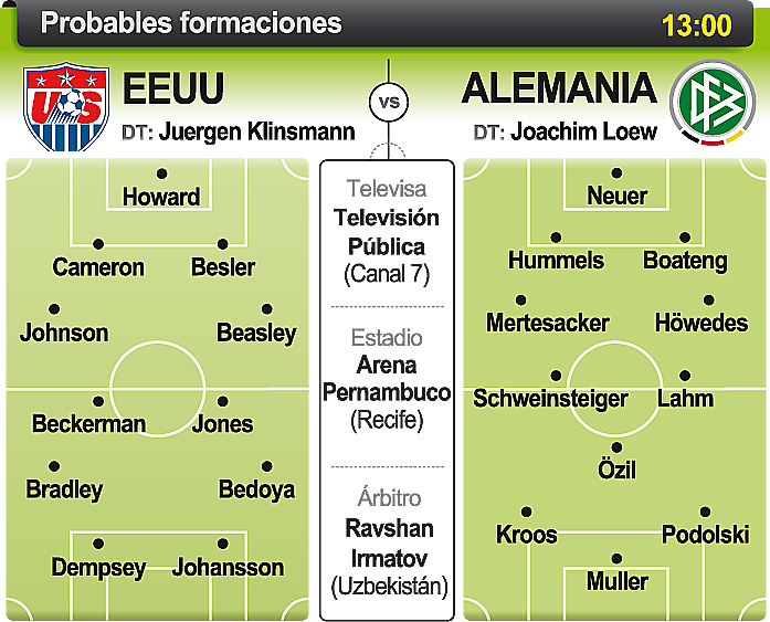 Estados Unidos y Alemania pueden avanzar de ronda en el Mundial con un empate cuando se enfrenten hoy, a partir de las 13, pero ambas selecciones buscarán ganar el partido y el Grupo G para evitar un posible duelo contra Bélgica y ser el blanco de las suspicacias de los otros equipos de la serie.