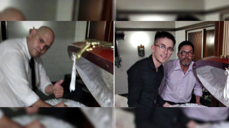 En una de las fotografías se puede ver a un hombre de contextura robusta y pelado identificado como "Diego Molina”. En la otra toma, se observan a un hombre y a un joven, ambos con anteojos, posando junto al cajón. El mayor se llama Claudio, de 48 años, y se encuentra junto a su hijo de 18.