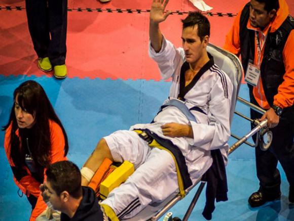 El medallista olímpico Sebastián Crismanich sufrió la fractura de su tibia derecha mientras participaba del Abierto de Taekwondo de México y corre riesgo su participación en los Panamericanos de Toronto. El correntino sintió un agudo dolor en la pierna derecha cuando competía con Lenn Hypolite, de Trinidad y Tobago, en choque de cuartos de final de la división welter (hasta 80 kilos).