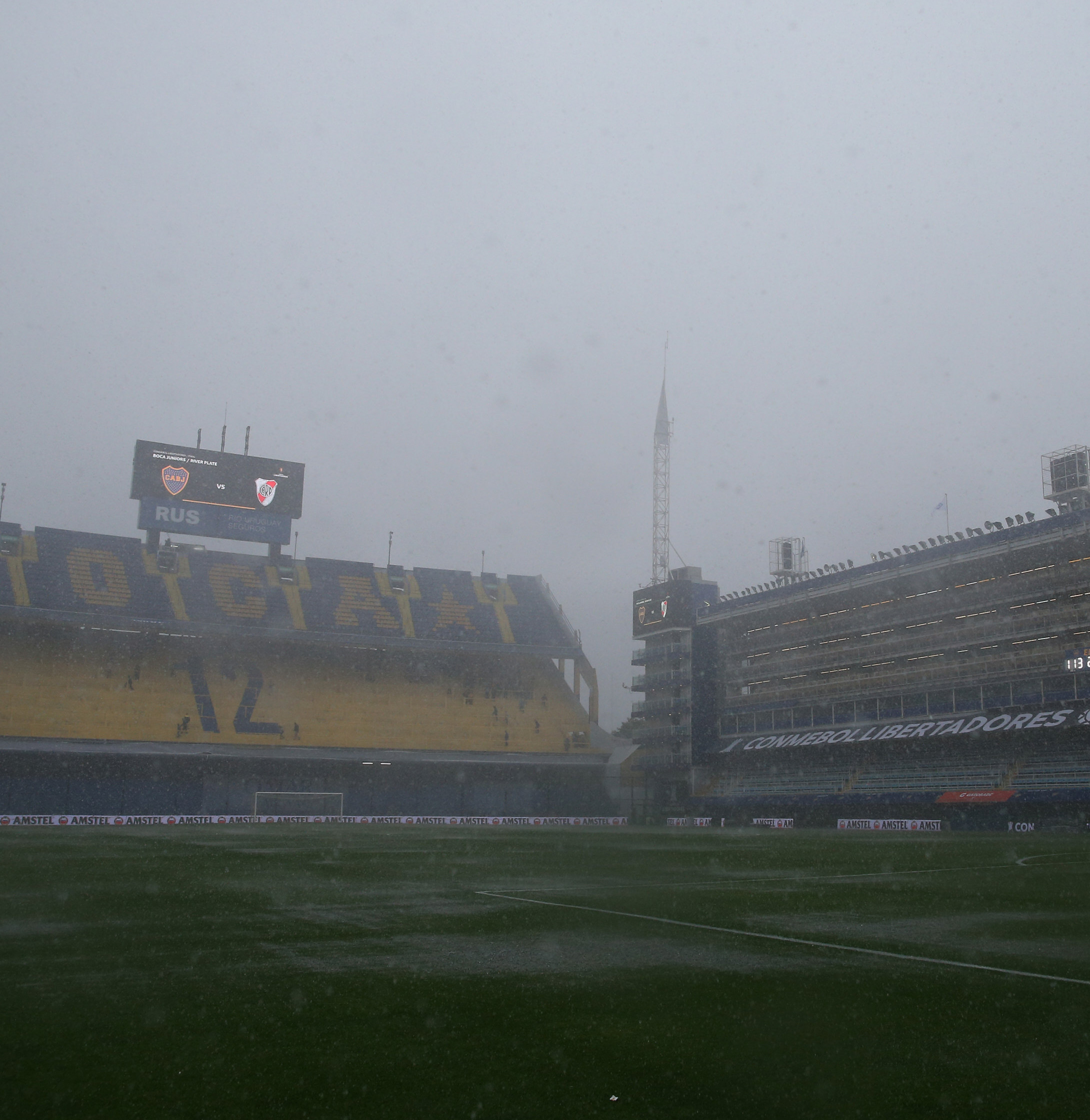 Una tormenta de más 100 mm en pocas horas en Buenos Aires obligó a suspender el partido ida que se programó para el día siguiente. Hubo quejas porque otros estadios de la zona no colapsaron.