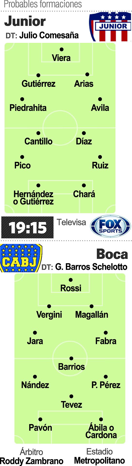 Boca, que no mostró en el plano internacional la hegemonía que ejerce a nivel local, visitará hoy (19.15 por Fox Sports) en la ciudad colombiana de Barranquilla al Junior, liderado por el ex River Teófilo Gutiérrez, con la premisa de ganar para no quedar afuera de la Copa Libertadores.